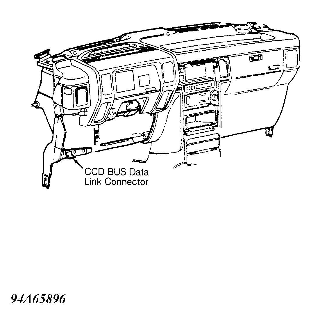 Diagnostic test procedures are designed to detect system faults as quickly as possible. Body Diagnostic Trouble Codes (DTCs) are accessed through CCD BUS Data Link Connector (DLC). See Figure . Scan tool is used to access information from CCD BUS DLC. See ENTERING ON-BOARD DIAGNOSTICS  under DIAGNOSTIC PROCEDURE.