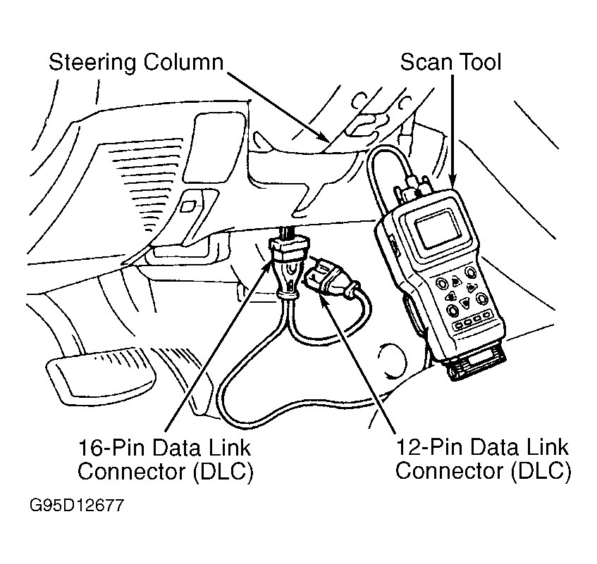 - Ensure battery is fully charged. Turn ignition off. Connect scan tool to Data Link Connector (DLC). Two connections required. One at 12-pin DLC, and another at 16-pin DLC. See DATA LINK CONNECTOR (DLC) table for connector location. See Fig 1.DATA LINK CONNECTOR (DLC) LOCATION