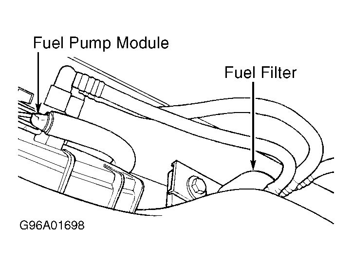 - Remove fuel tank strap bolts. Slightly lower fuel tank for access to fuel pump module. Fuel pump module is located on top of fuel tank. See Figure .