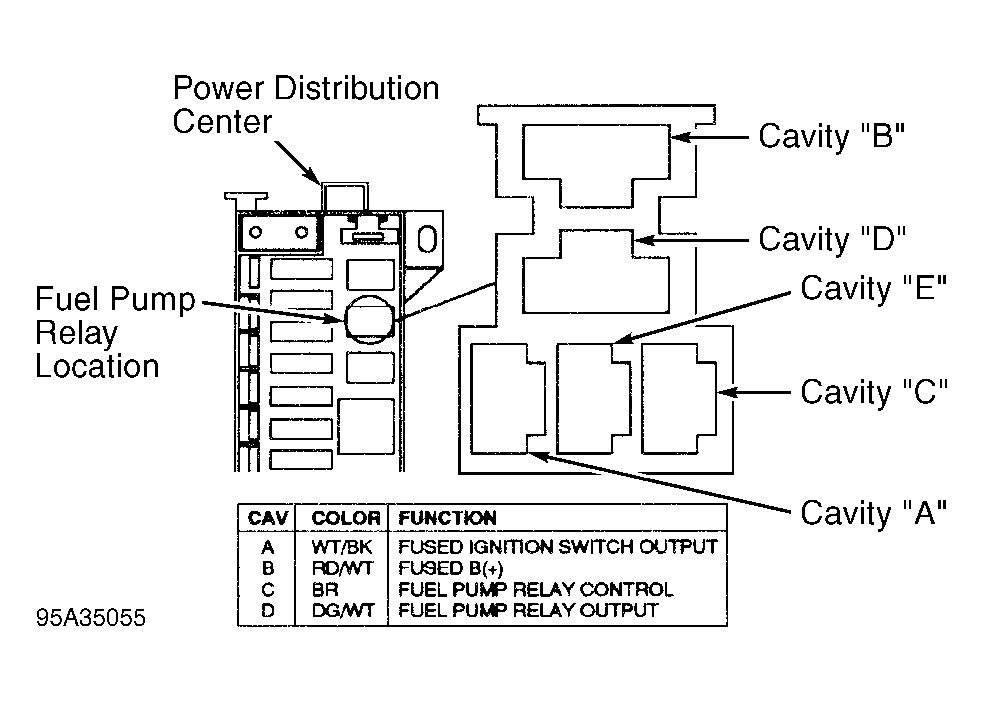 - Remove fuel pump relay from power distribution center. See Fig 1 . Using scan tool in voltmeter mode, check voltage at cavity "A" (White/Black wire) for fuel pump relay in power distribution center. See Fig 1 .