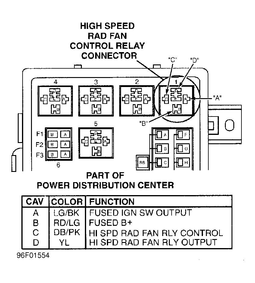 - Disconnect high speed fan relay. High speed fan relay is located in Power Distribution Center (PDC). Using scan tool in voltmeter mode, check voltage on ignition switch output circuit at high speed fan relay connector. See Fig 1. If voltage is more than 10 volts, go to next step. If voltage is 10 volts or less, repair open ignition switch output circuit. Perform TEST VER-2A .