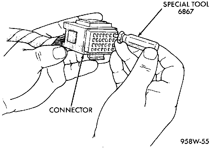 4. Using Special Tool 6867, push the terminal to remove it from the connector.