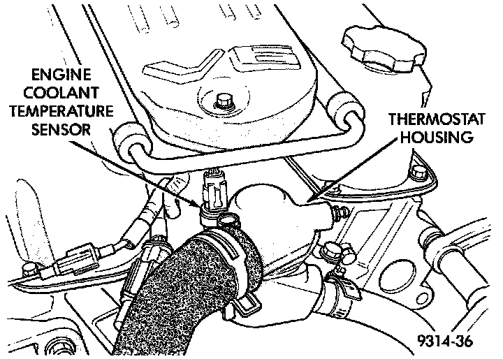 NOTE: The engine coolant temperature sensor is located next to the thermostat housing (Fig. 96).