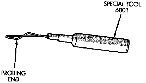 - Probing Tools - These tools are used for probing terminals in connectors. Select the proper size tool from Special Tool Package 6807 and insert it into the terminal being tested. Use the other end of the tool to insert the meter probe.