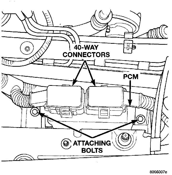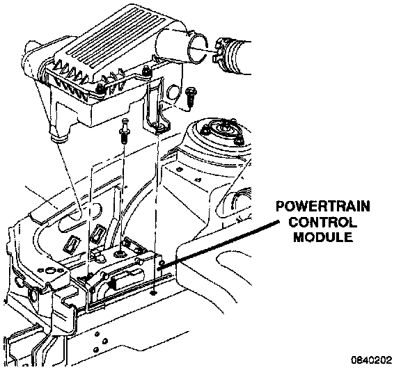 The Powertrain Control Module (PCM) is mounted in the right front corner of engine compartment.