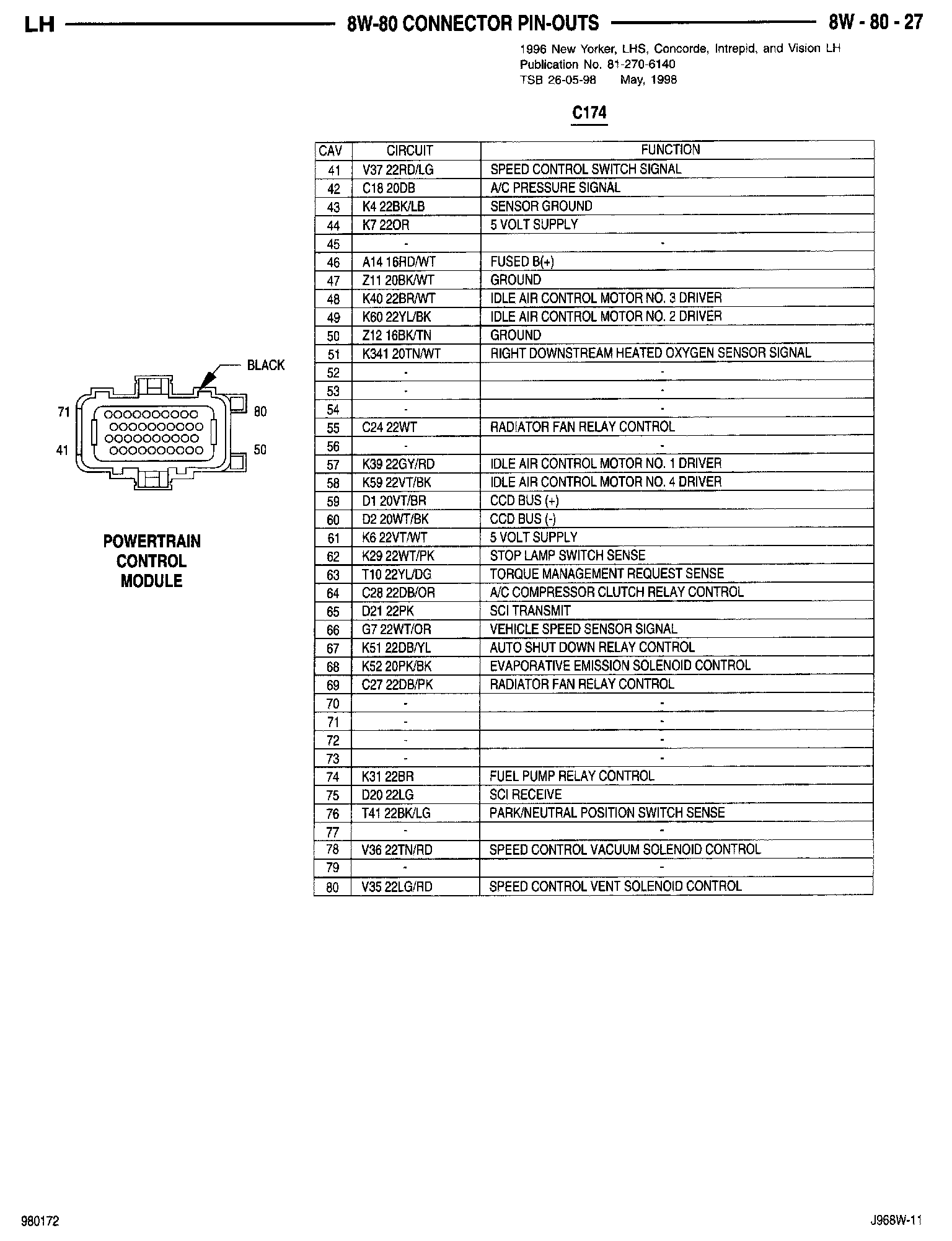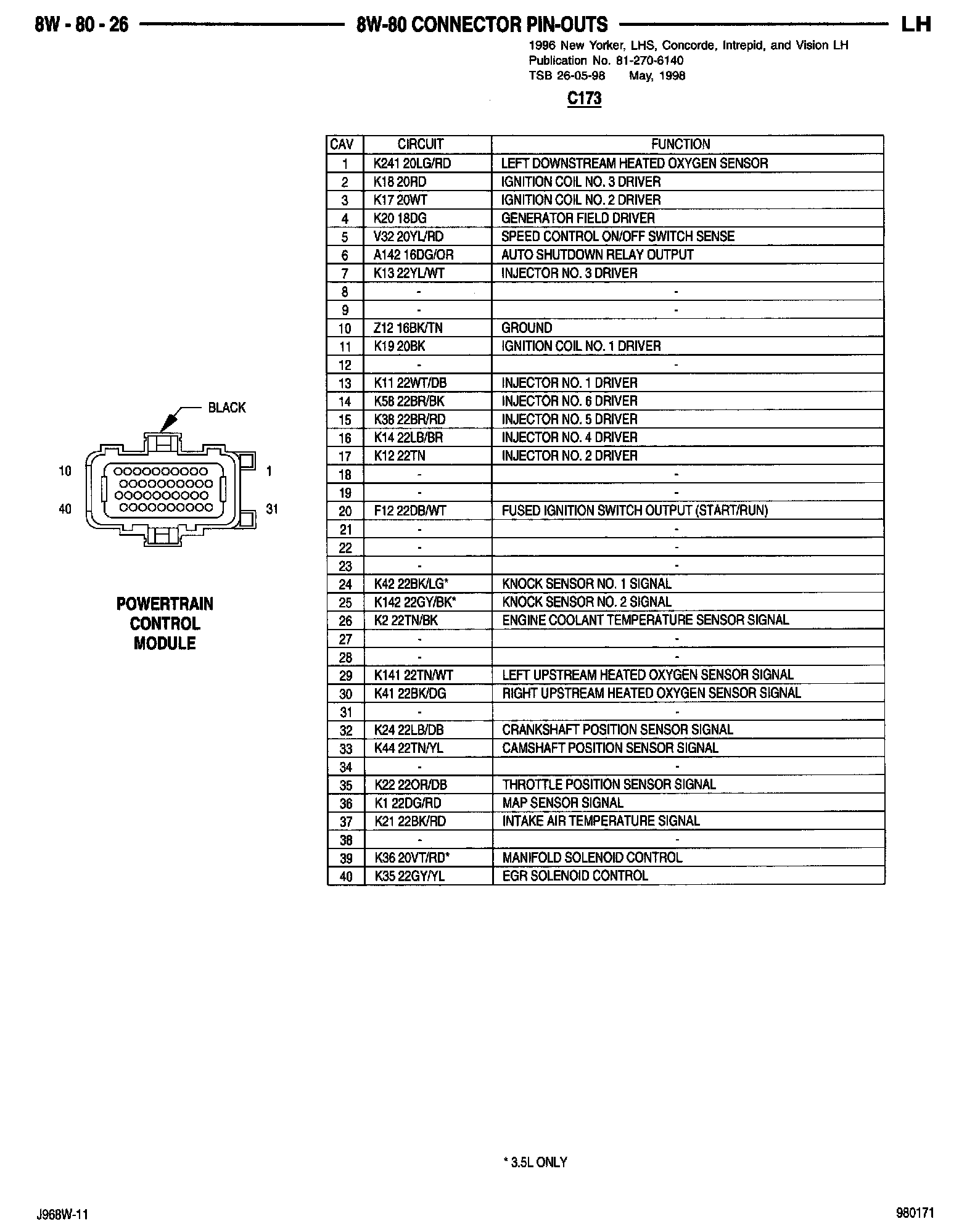 Home >> Dodge and Ram >> 1996 >> Intrepid V6-201 3.3L >> Repair and Diagnosis >> Powertrain Management >> Relays and Modules - Powertrain Management >> Relays and Modules - Computers and Control Systems >> Engine Control Module >> Technical Service Bulletins >> All Technical Service Bulletins >> Engine Controls - PCM Wiring Update