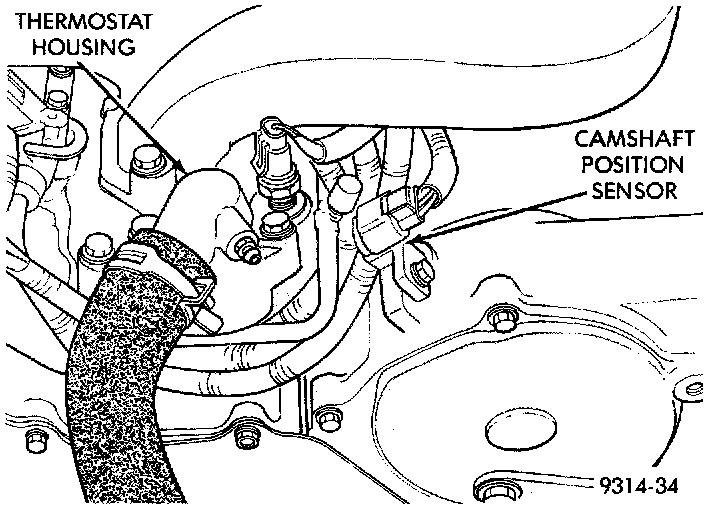 The camshaft position sensor is mounted in the flout of the timing case cover (Fig. 8).