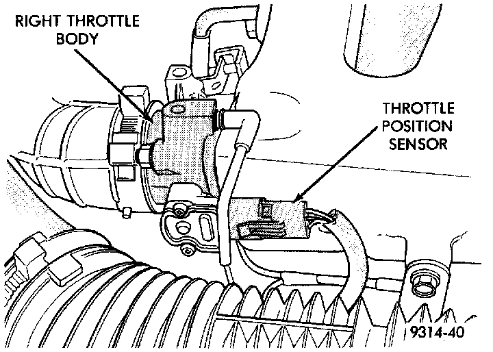 The throttle position sensor mounts to the side of the throttle body (Fig. 20). Although this engine has two throttle bodies it only uses one TPS mounted on the right side throttle body.