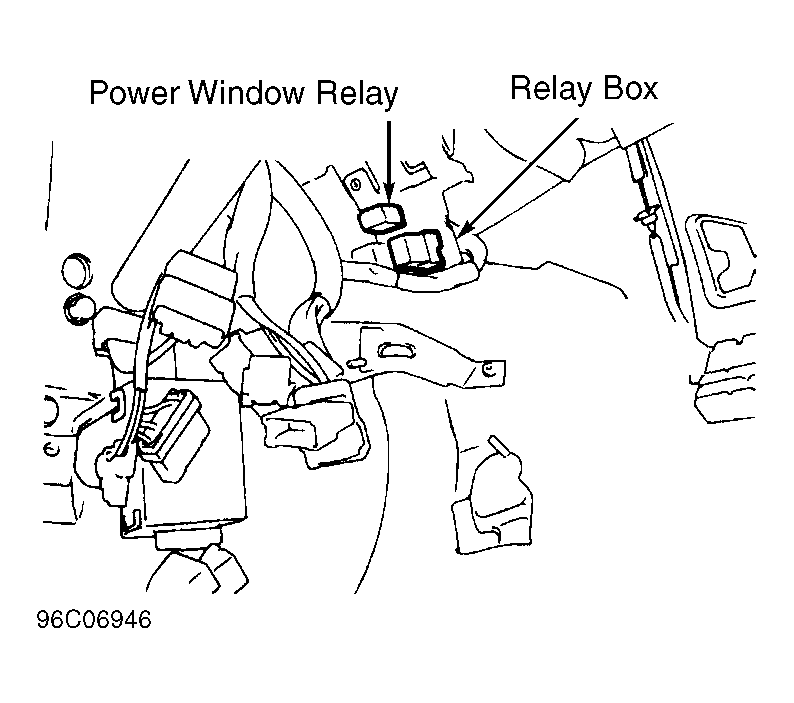 - Remove power window relay from fuse/relay block located in engine compartment. SeeFig 1