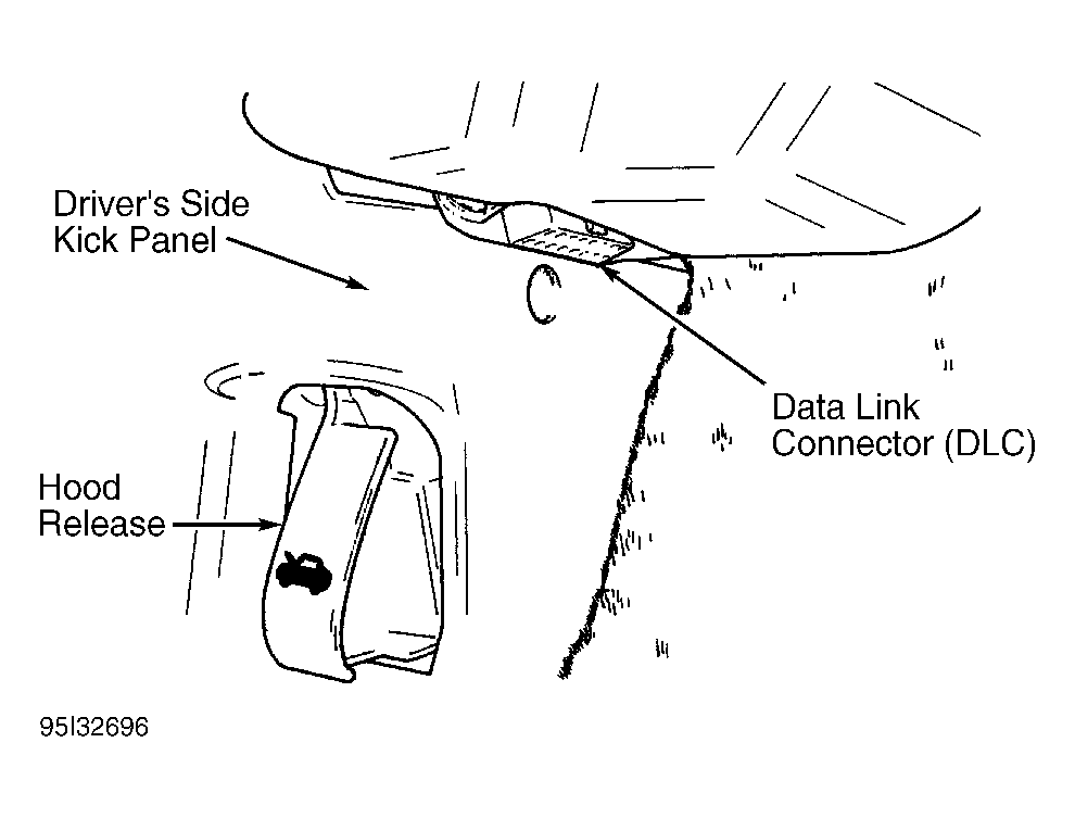 - Using fuel pressure gauge hose, connect Fuel Pressure Gauge (C-4799-B) to fuel pressure test port, located at center of fuel rail. Connect scan tool to Data Link Connector (DLC), located below driver's side of instrument panel. See Fig 1 .