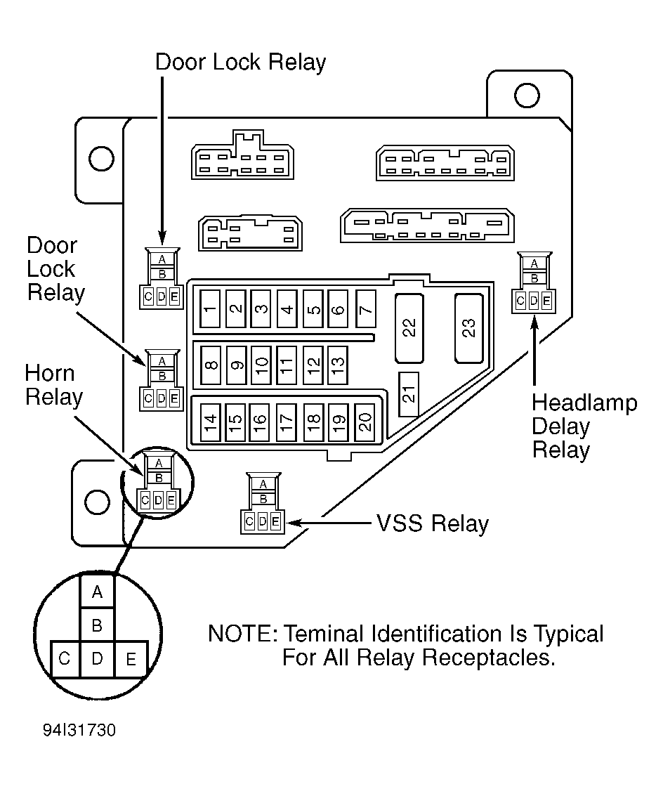 1. Remove and inspect fuse No. 14. See Figure . If fuse is okay, go to step 3). If fuse is open, turn ignition switch to OFF position. Using scan tool in ohmmeter mode, measure resistance at fused ignition terminal (Dark Blue wire) on fuse No. 14. If resistance is 5 ohms or greater, replace fuse. If resistance is less than 5 ohms, go to next step.