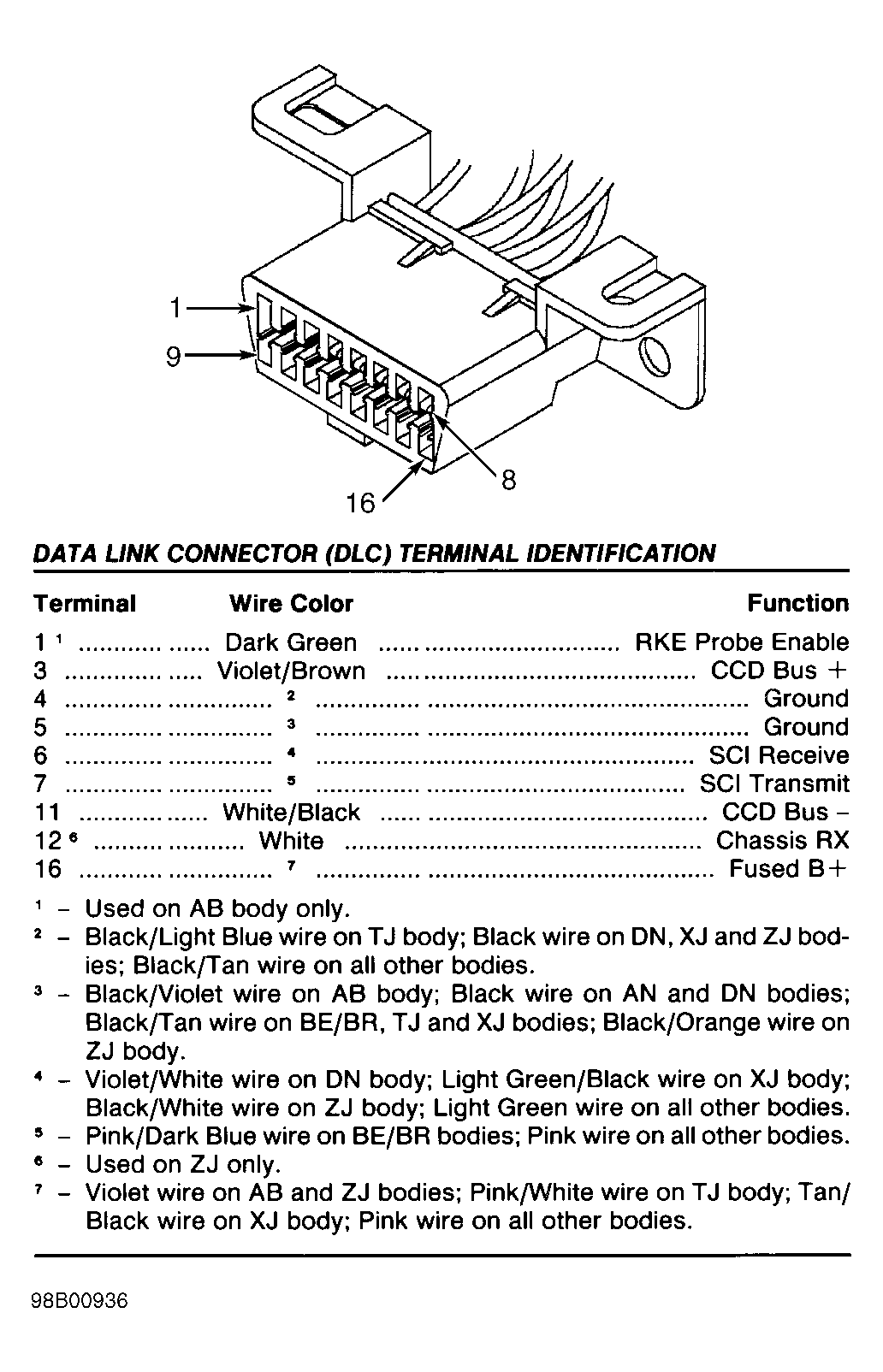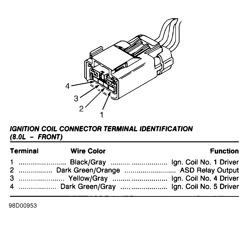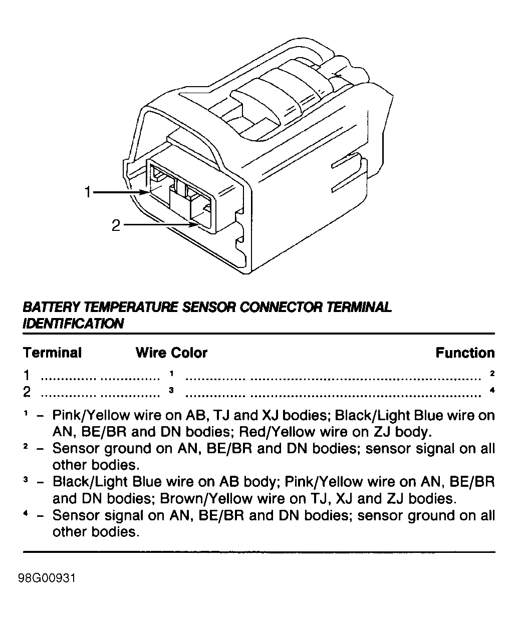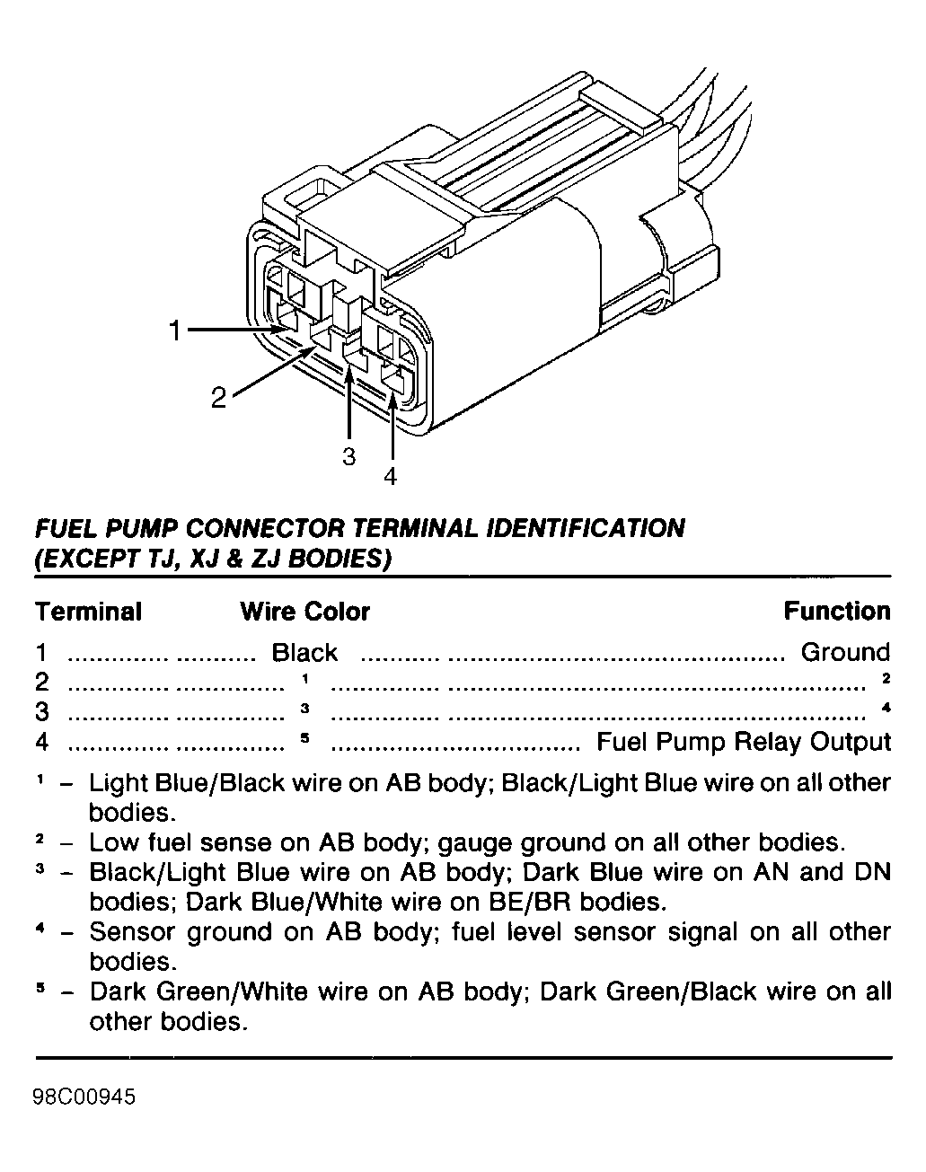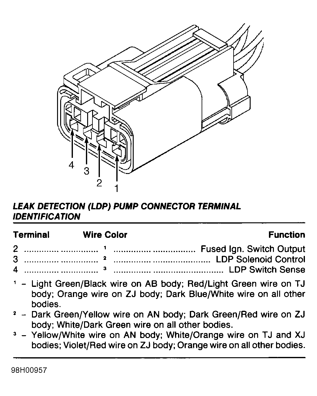 The following terminals are shown as viewed from harness side of connector. If actual connector wire colors differ from those shown in illustration, see appropriate wiring diagram in WIRING DIAGRAMS article to ensure correct circuit is being tested.