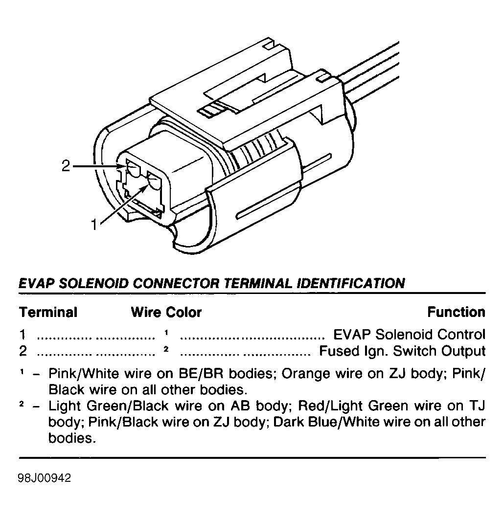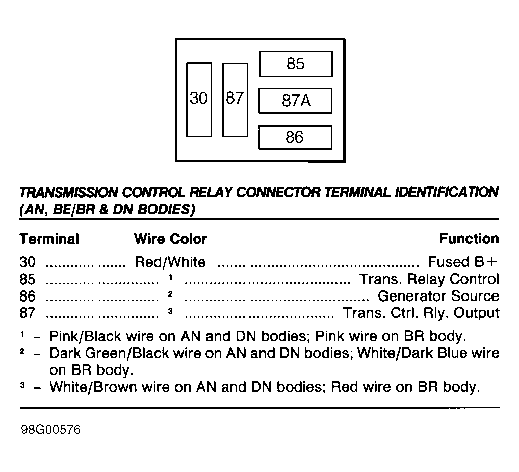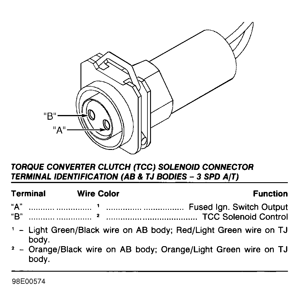 Fig 58: Identifying Torque Converter Clutch (TCC) Solenoid Connector Terminals (AB & TJ Bodies - 3-Spd A/T)