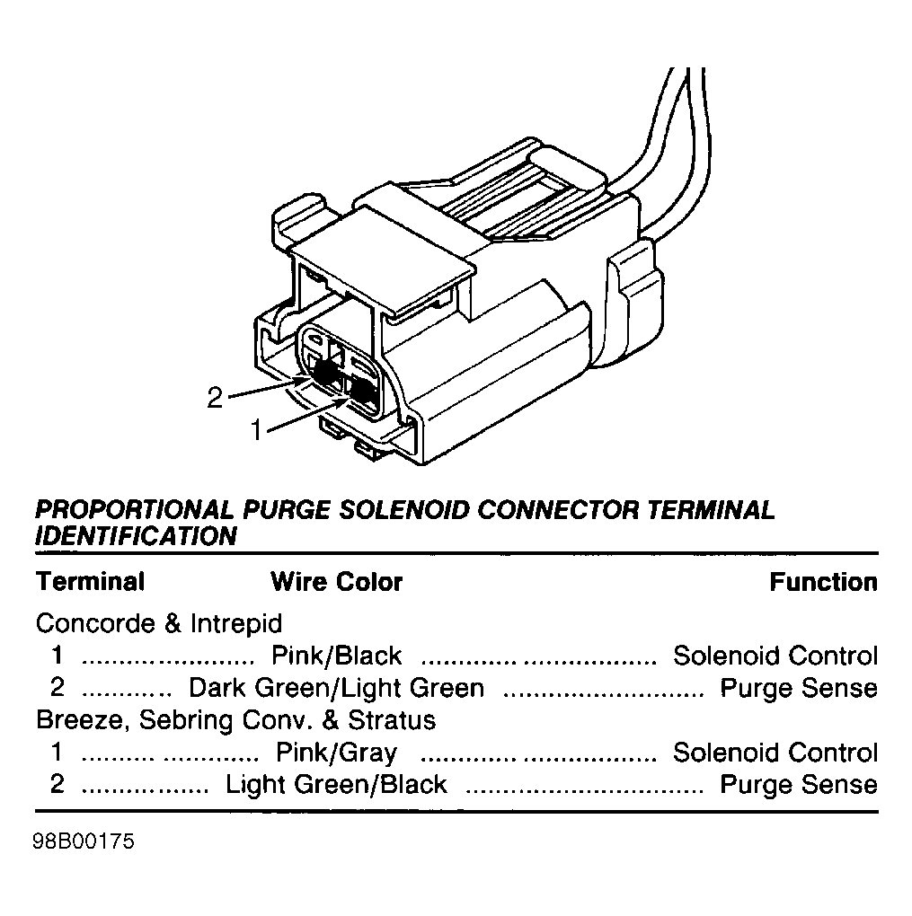 Courtesy of CHRYSLER CORP. PROPORTIONAL PURGE SOLENOID CONNECTOR TERMINAL IDENTIFICATION