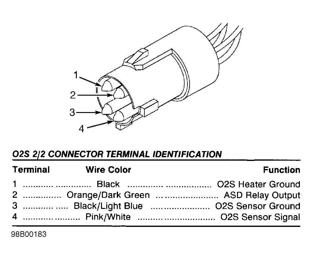 Courtesy of CHRYSLER CORP. O2S 2/2 CONNECTOR TERMINAL IDENTIFICATION