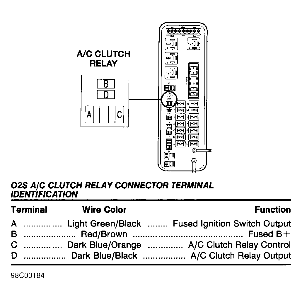 Courtesy of CHRYSLER CORP. O2S A/C CLUTCH RELAY CONNECTOR TERMINAL IDENTIFICATION