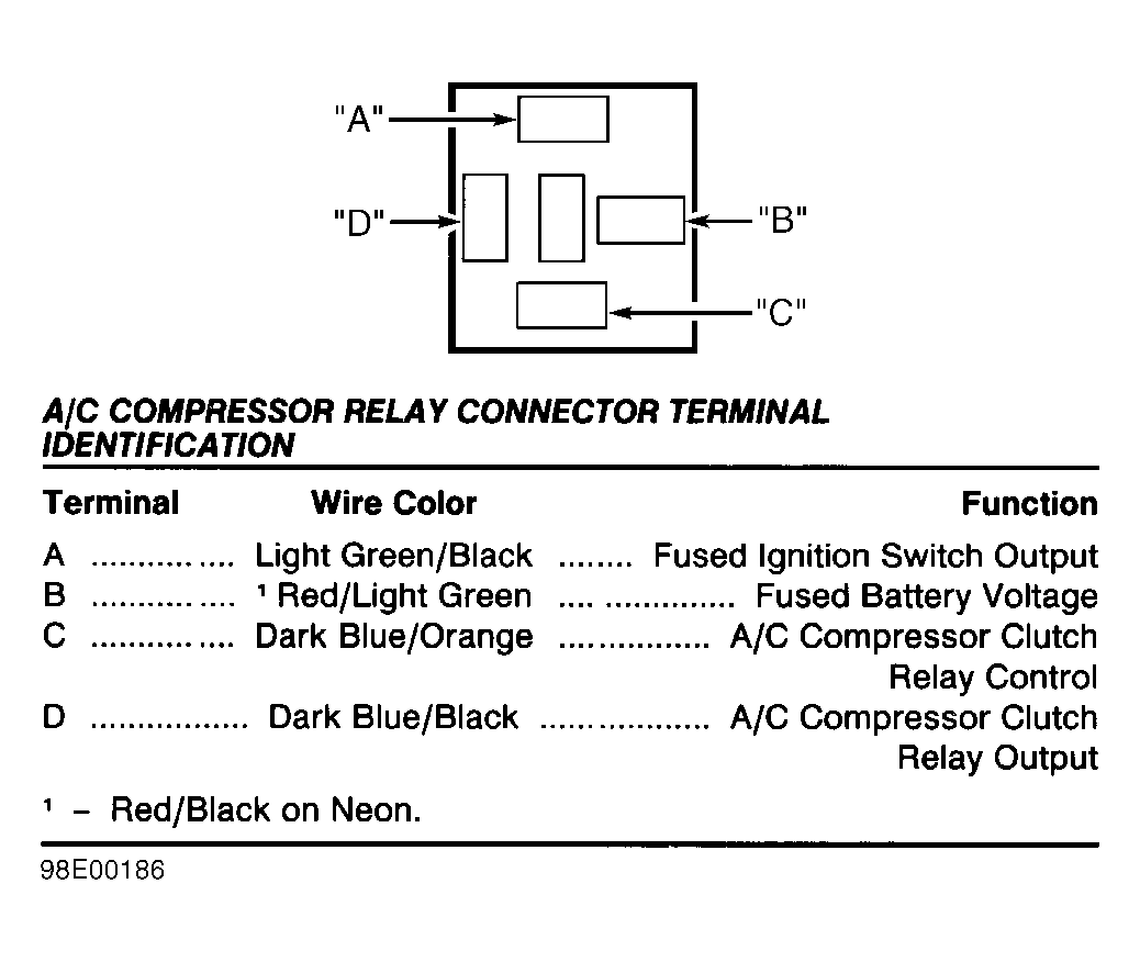 Courtesy of CHRYSLER CORP. A/C COMPRESSOR RELAY CONNECTOR TERMINAL IDENTIFICATION