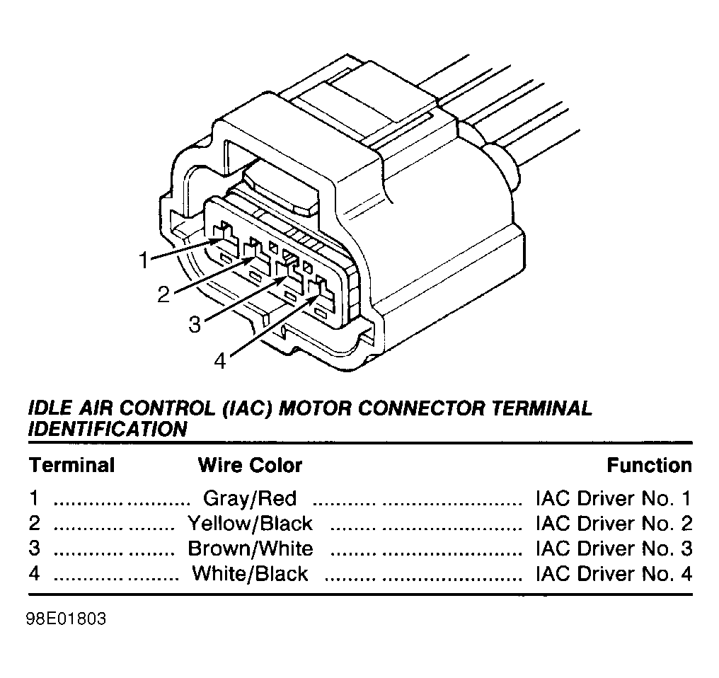 Courtesy of CHRYSLER CORP. IDLE AIR CONTROL (IAC) MOTOR CONNECTOR TERMINAL IDENTIFICATION