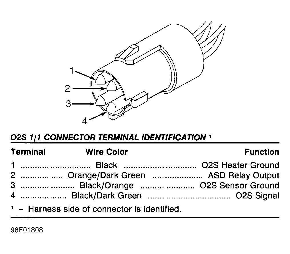 Courtesy of CHRYSLER CORP. O2S 1/1 CONNECTOR TERMINAL IDENTIFICATION