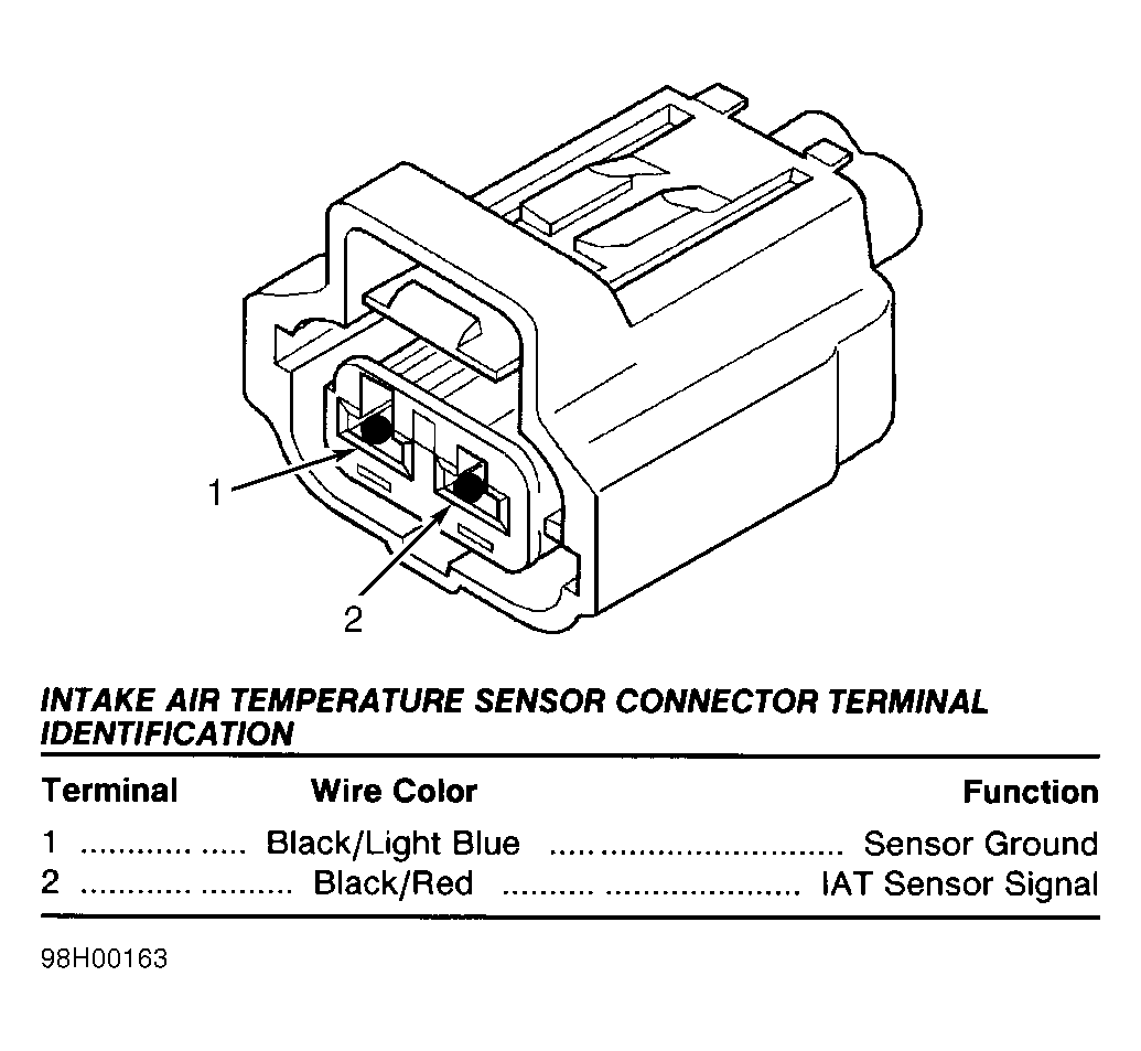 Courtesy of CHRYSLER CORP. INTAKE AIR TEMPERATURE SENSOR CONNECTOR TERMINAL IDENTIFICATION