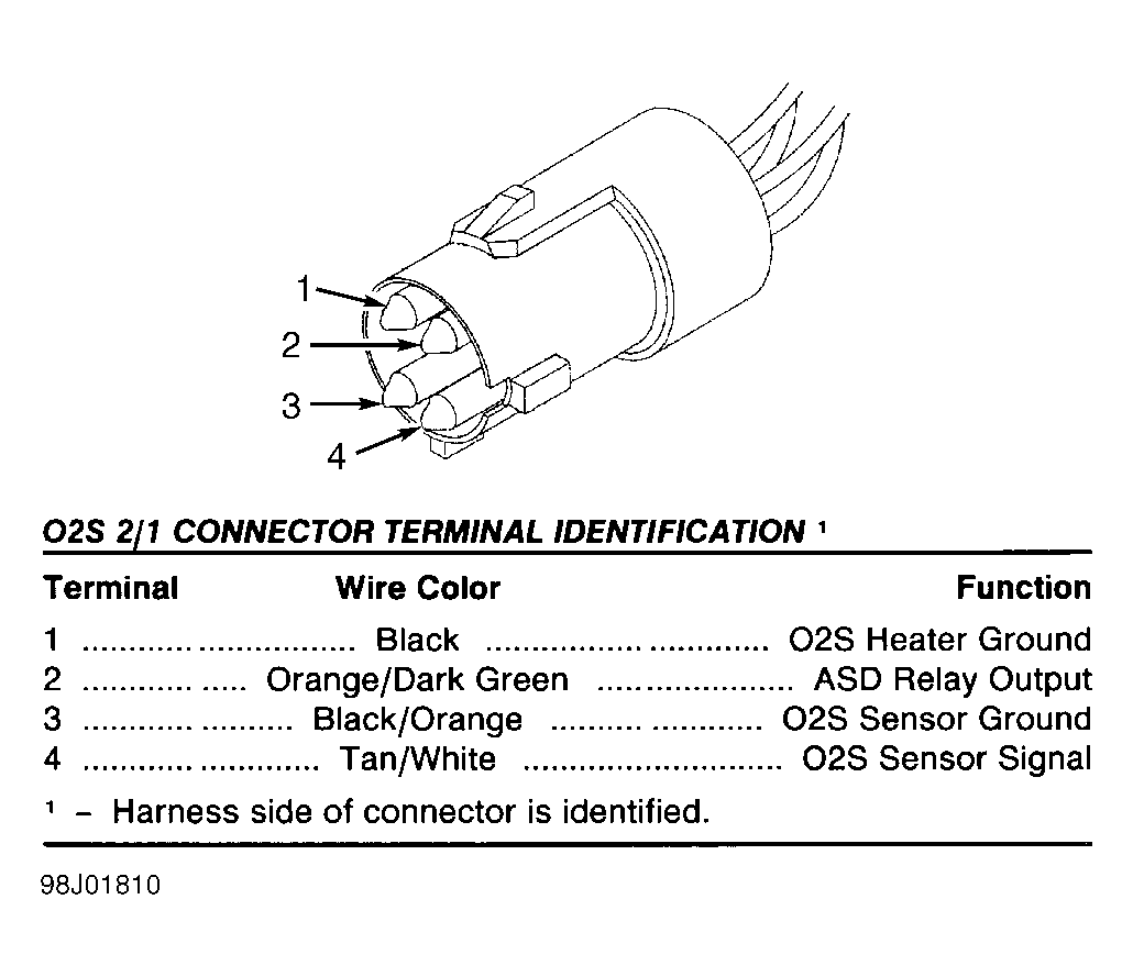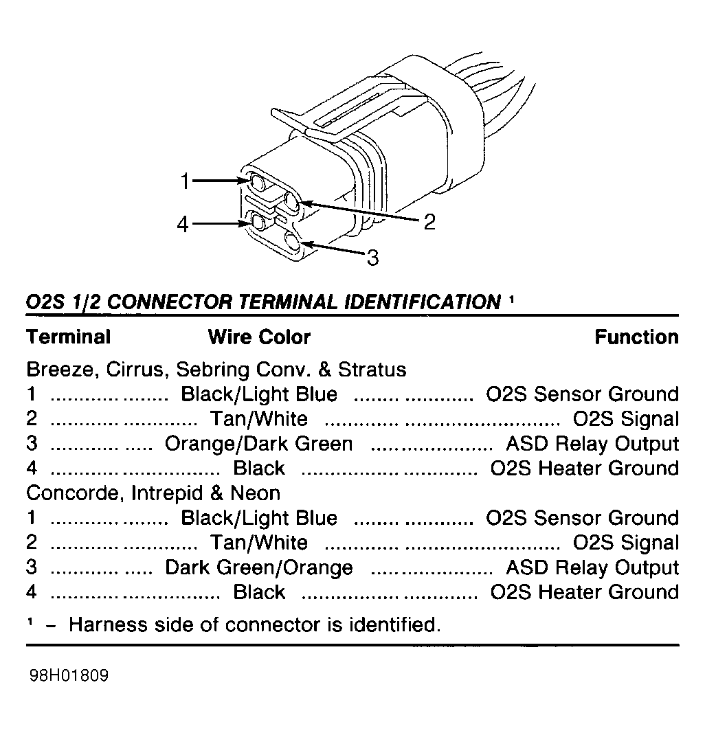 Courtesy of CHRYSLER CORP. O2S 1/2 CONNECTOR TERMINAL IDENTIFICATION