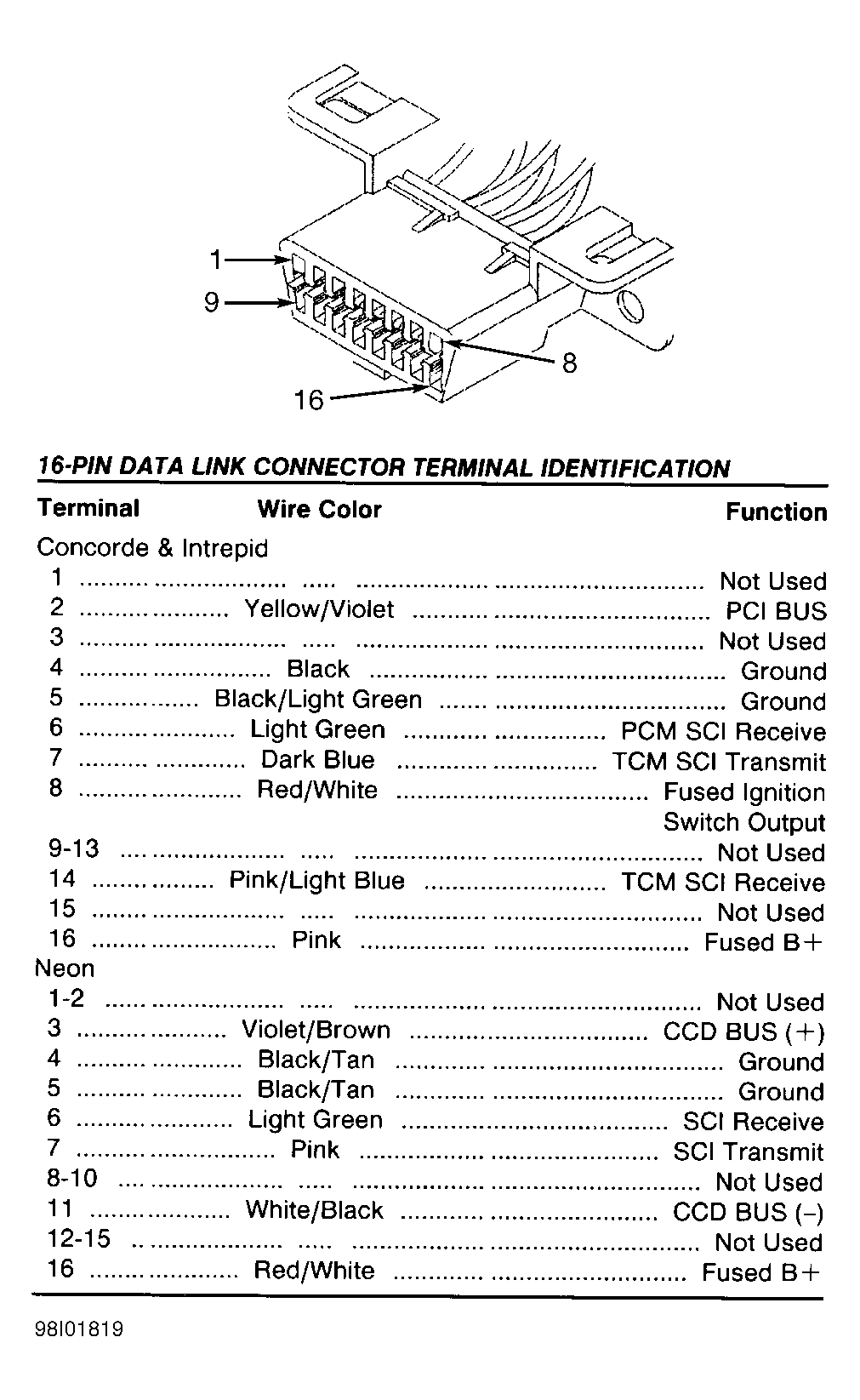 Courtesy of CHRYSLER CORP. 16-PIN DATA LINK CONNECTOR TERMINAL IDENTIFICATION