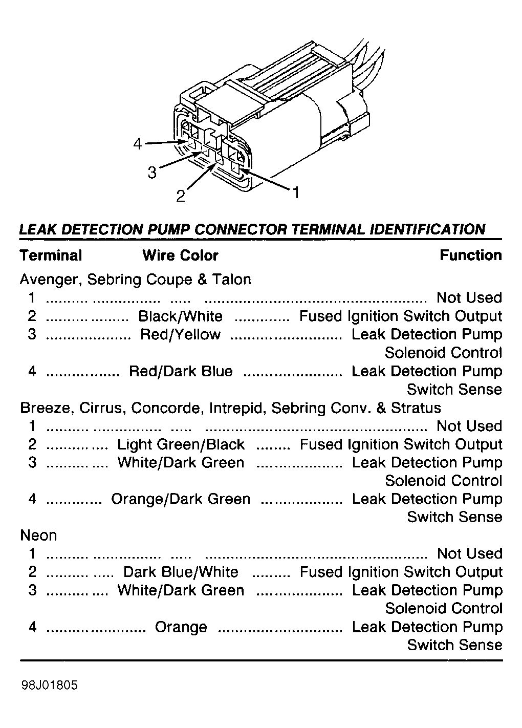 Courtesy of CHRYSLER CORP. LEAK DETECTION PUMP CONNECTOR TERMINAL IDENTIFICATION