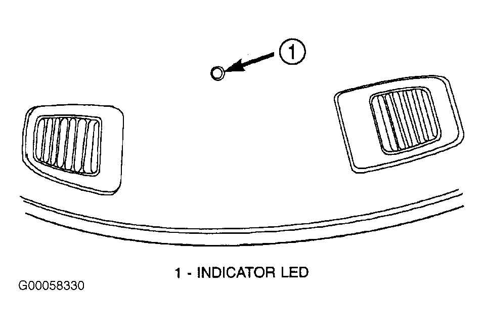 - Turn ignition switch to RUN position. Receiver acknowledges programming mode by flashing Vehicle Theft Security System LED located on top, center of instrument panel. See Fig 1