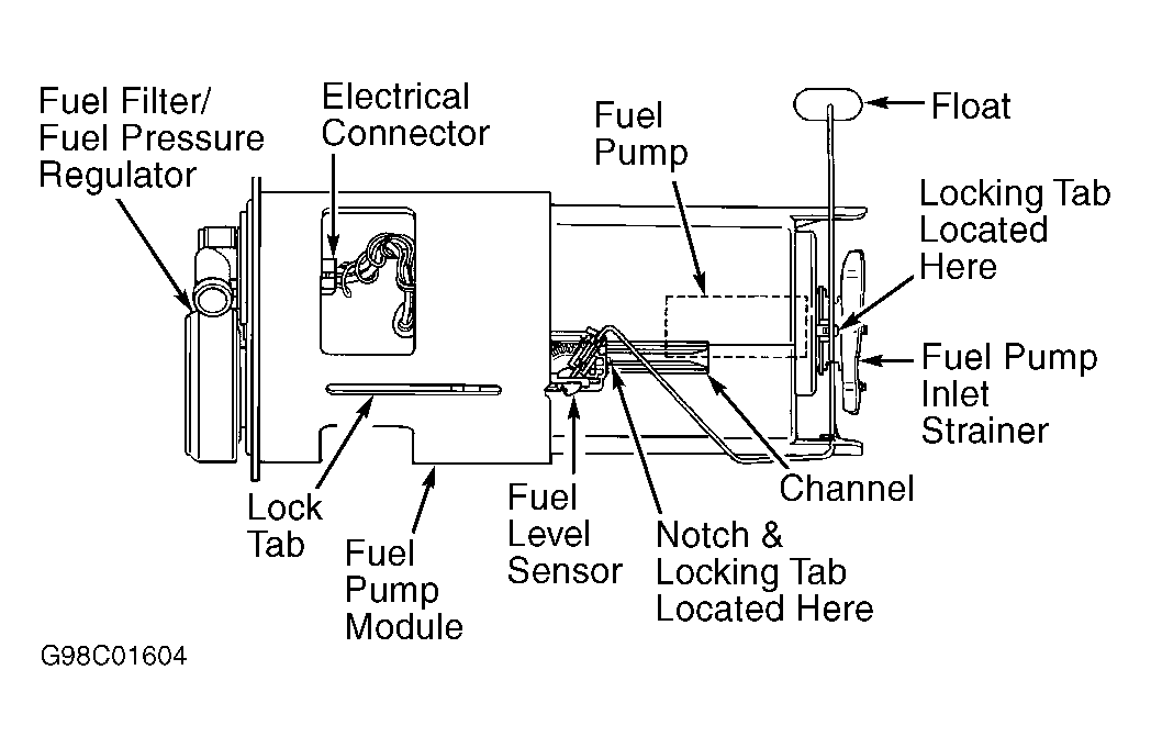 - To install, reverse removal procedure. Ensure "O" ring is properly seated when installing fuel pump inlet strainer. Reinstall fuel pump module using proper procedure.