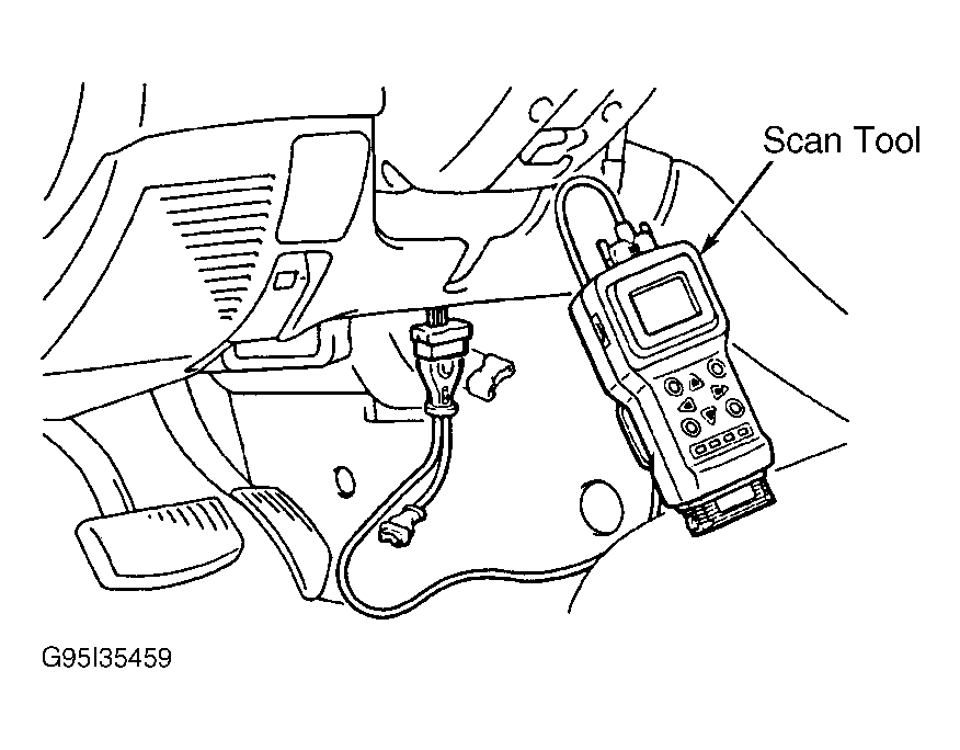 - Ensure ignition is off. Connect scan tool to 16-pin Data Link Connector (DLC). DLC is located under instrument panel, to right of steering column. See Fig 1