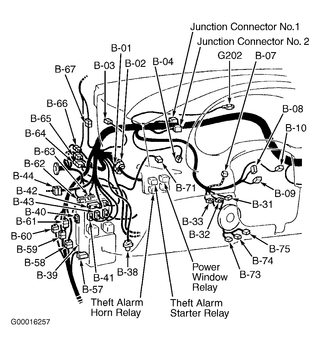 - Check continuity between ground and terminals No. 4 (Black wire) and No. 5 (Black/White wire) at 16-pin DLC. If continuity is present at both terminals, check for loose scan tool cable connections or bad cable. If cable connections or cable are defective, repair or replace components as necessary. If cable connections and cable are okay, replace scan tool. If continuity is not present at either terminal, repair open in Black wire or Black/White wire between DLC and ground connection G202. Ground is located behind left side of instrument panel. See Figure.