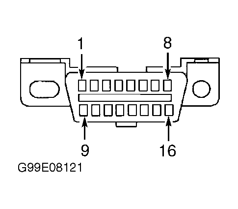- Locate 16-pin Data Link Connector (DLC) under left side of instrument panel, near center console. Measure voltage between ground and terminal No. 16 (Red/Black wire) at DLC. See Fig 1. If battery voltage is present, go to next step. If battery voltage is not present, check power circuit to DLC for open or short to ground. See DATA LINK CONNECTORS and POWER DISTRIBUTION articles in WIRING DIAGRAMS.