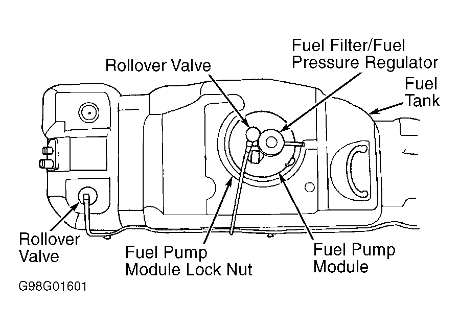 - Fuel pump module is located on top of fuel tank. See Figure. Fuel tank must be removed for servicing of fuel pump module. Remove fuel tank. See FUEL TANK .