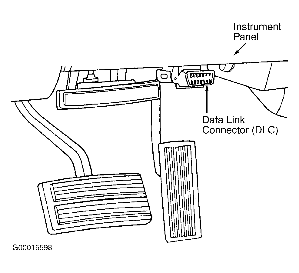 1. To program PCM and clear DTCs from ABS and SRS modules, connect scan tool to Data Link Connector (DLC). DLC is located below driver's side of instrument panel. See Figure . Turn ignition on with engine off.