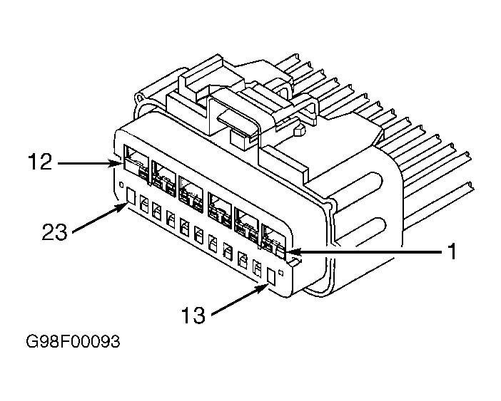 . Connector terminal numbers may, or may not, be molded into connector faces. However, if connector terminal identification differs from that shown in following illustrations, use wire colors to ensure correct circuit is being tested. See WIRING DIAGRAMS