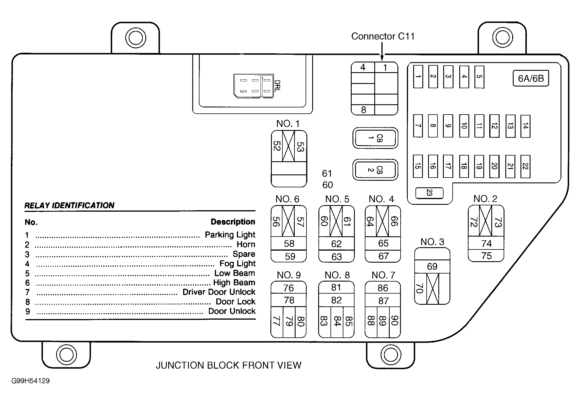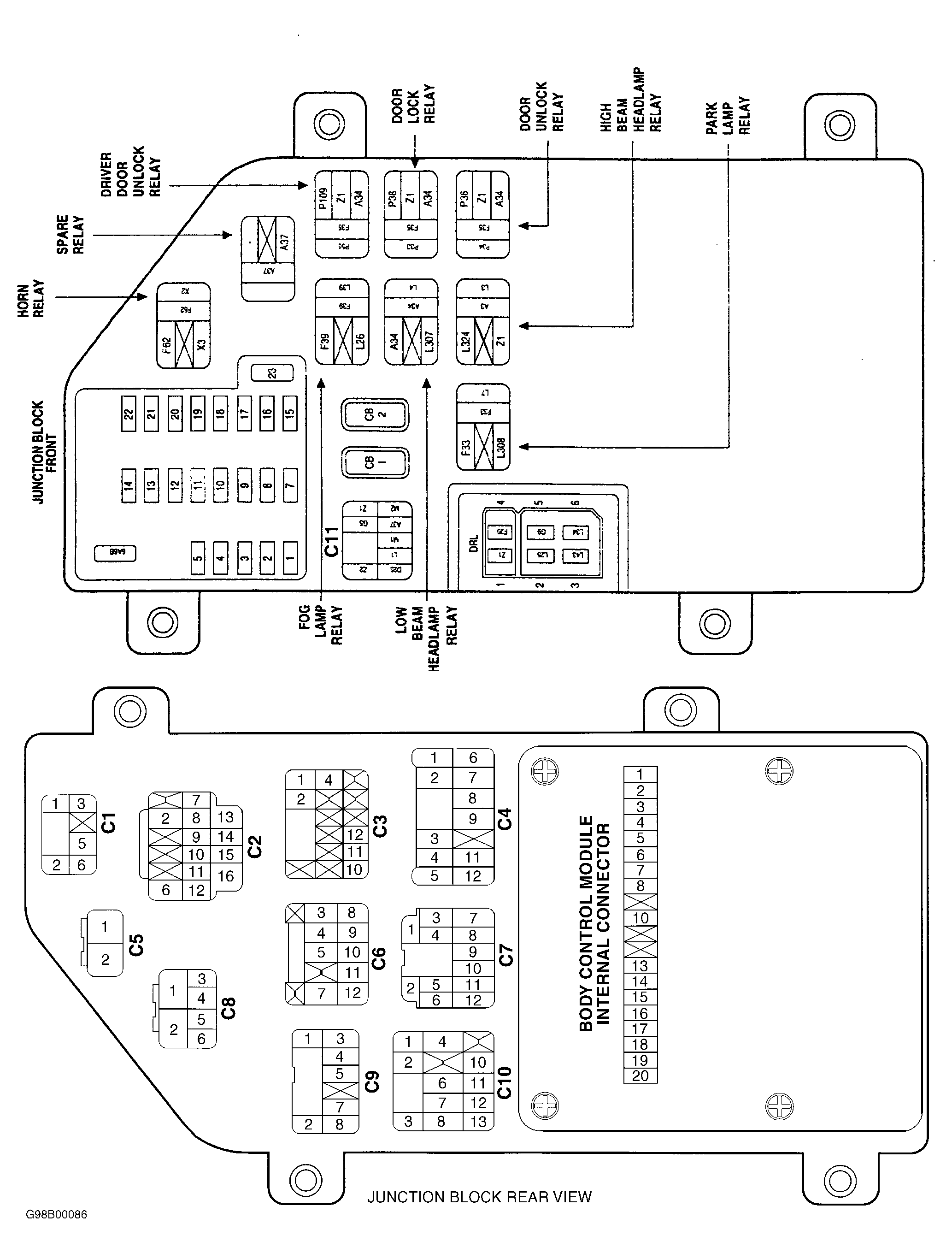 1. Turn ignition off. Disconnect junction block harness connector C11. See Figure . Close all doors. Turn ignition on. If all courtesy lights illuminate except overhead console lights, go to next step. If all courtesy lights do not illuminate and overhead console lights illuminates, go to step  3 .