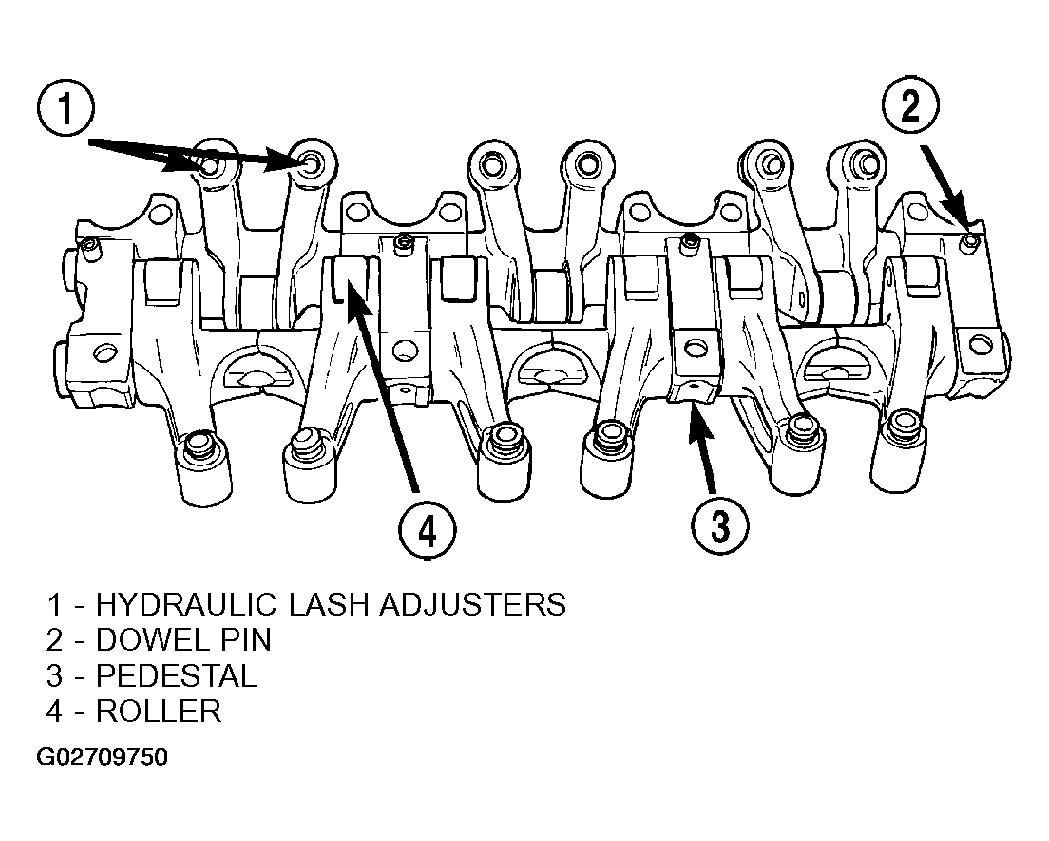 - Install dowel pins (Fig 1). Dowel pins pass through the pedestal into the exhaust rocker shafts. Dowel pins should be pressed in until they bottom-out against the rocker shaft in the pedestal.