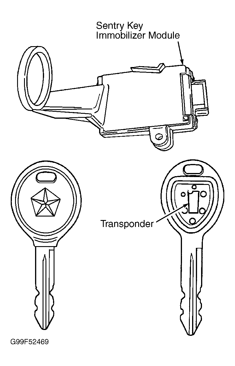 The Sentry Key Immobilizer System (SKIS) is designed to provide passive protection against unauthorized vehicle use by preventing the engine from operating. The components of this system are the SKIM, . The Body Control Module (BCM), Sentry Key transponder, VTSS indicator LED and the Powertrain Control Module (PCM). See Fig 1 -Fig 3