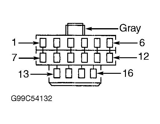 6. Disconnect BCM harness connector C1. Measure resistance between ground and terminal No. 2 (Violet/Yellow wire) at Data Link Connector (DLC). See Figure . If resistance is greater than 1000 ohms, go to next step. If resistance is 1000 ohms or less, repair short to ground in Violet/Yellow wire between BCM and DLC.