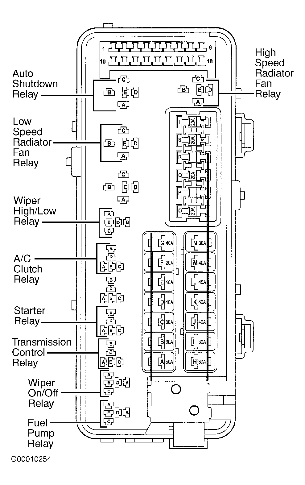 1. Locate Power Distribution Center (PDC) on left side of engine compartment. See Figure. Remove fuel pump relay from PDC. See Fig 1.