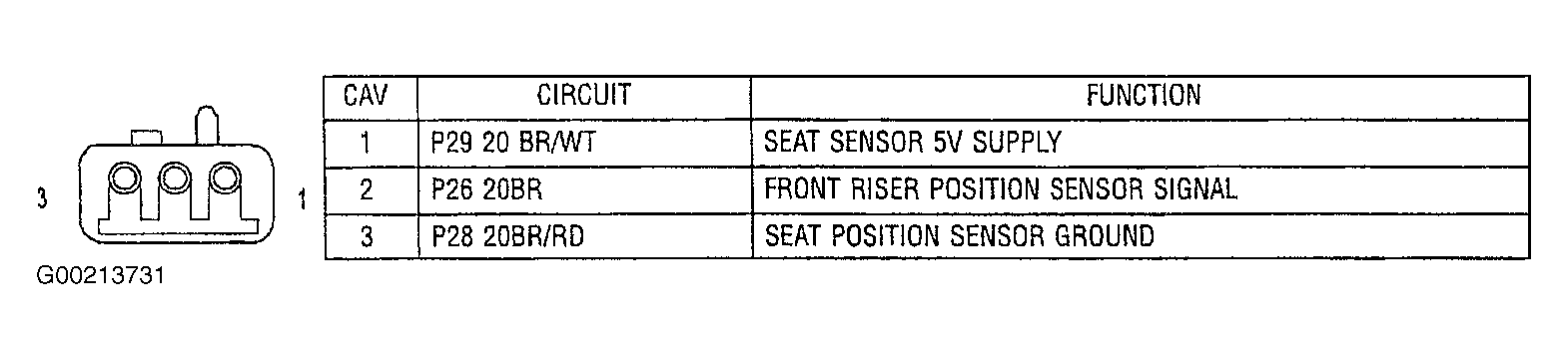 - Turn ignition off. Ensure Memory Heated Seat/Mirror Module (MHSMM) is properly connected. Disconnect driver power seat horizontal motor sensor connector. Turn ignition on. Measure voltage on driver power seat horizontal motor sensor connector terminal No. 1, seat sensor 5-volt supply circuit (Brown/White wire). See Figure . If voltage is 4.5 volts or less, go to next step. If voltage is more than 4.5 volts, go to step 4 .