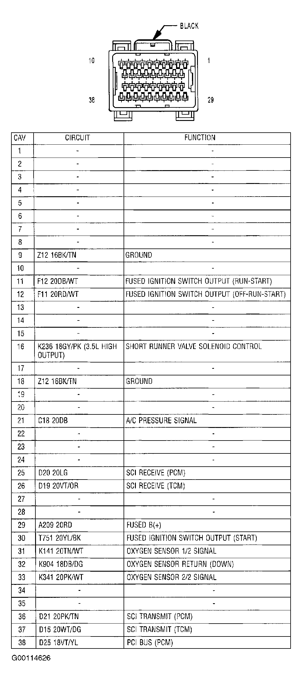 • Black/Tan wire at PCM C1 harness connector terminal No. 18.