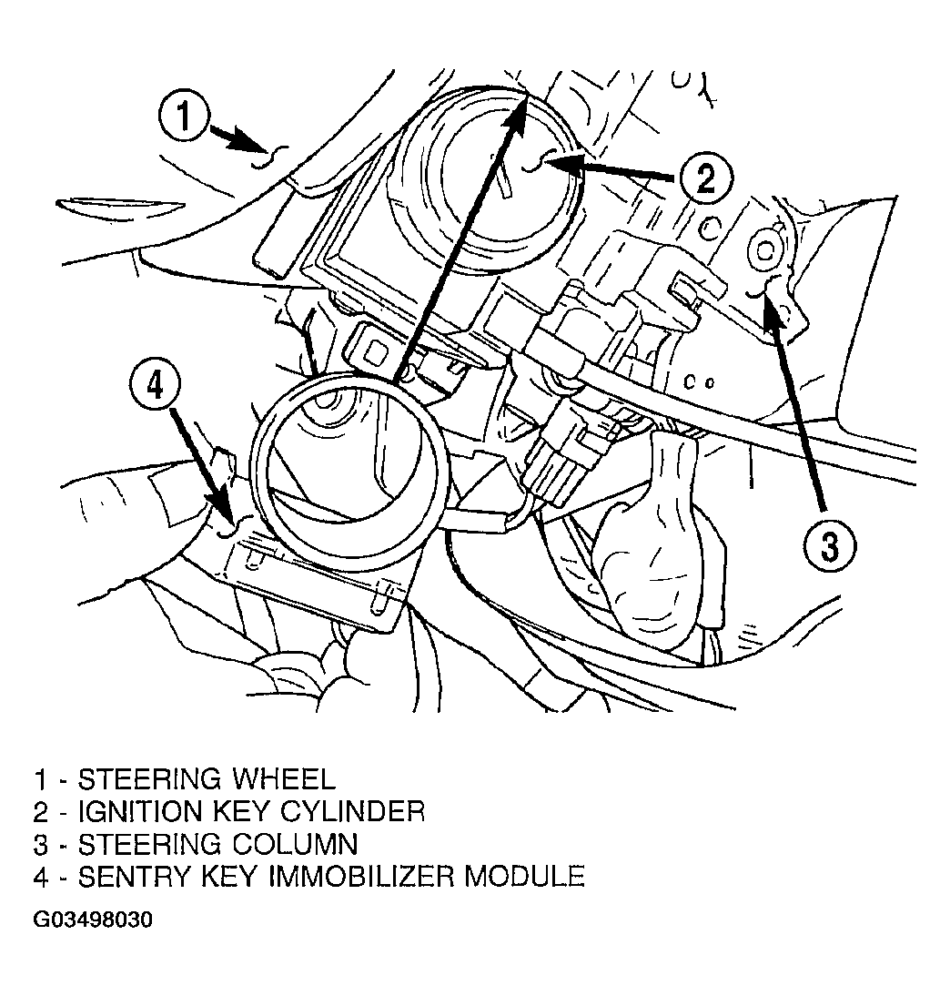 - Disengage the steering column wire harness from the Sentry Key Immobilizer Module (SKIM).