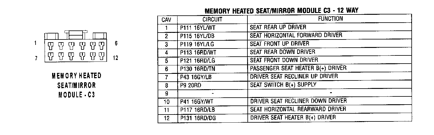 Memory Heated Seat/Mirror Module - C3:
