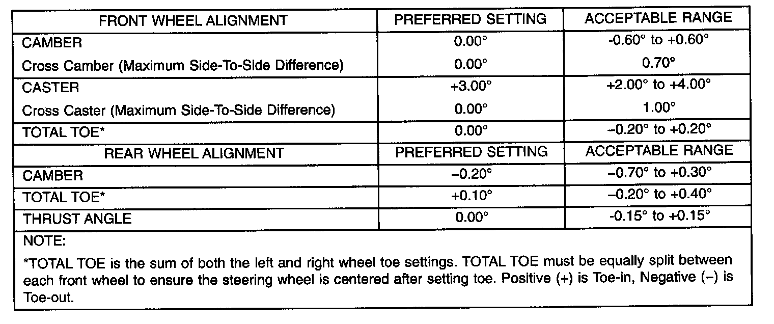 Wheel Alignment Specifications Chart