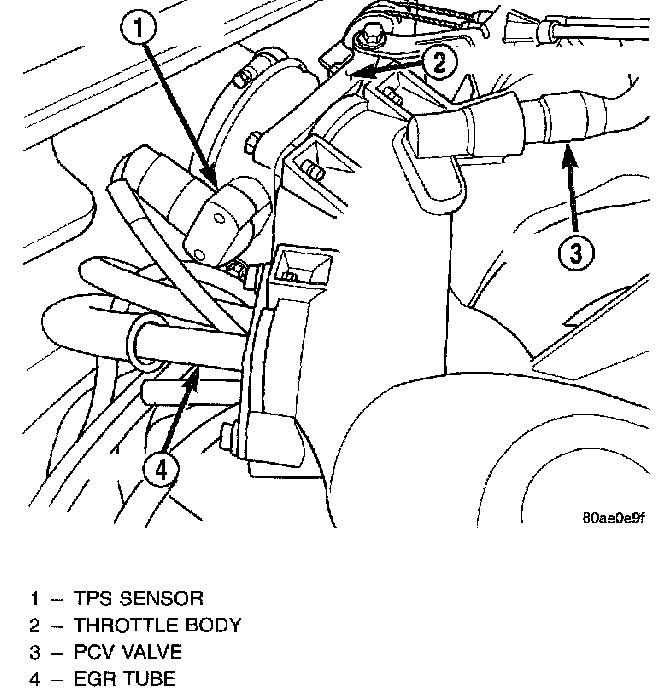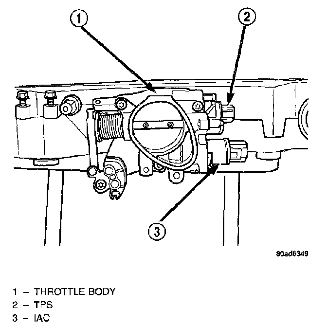 The throttle position sensor mounts to the side of the throttle body. The sensor connects to the throttle blade shaft. The TPS is a variable resistor that provides the Powertrain Control Module (PCM) with an input signal (voltage).