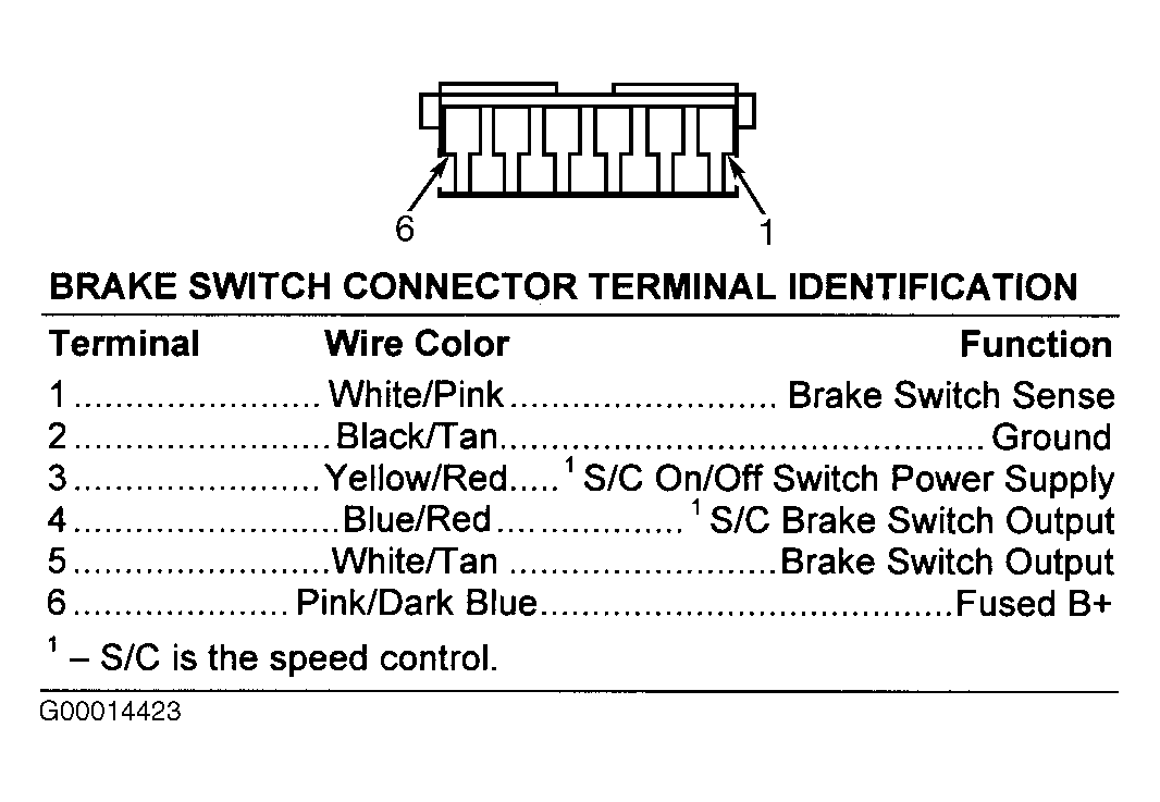 Fig 1: Identifying Brake Switch Connector Terminals