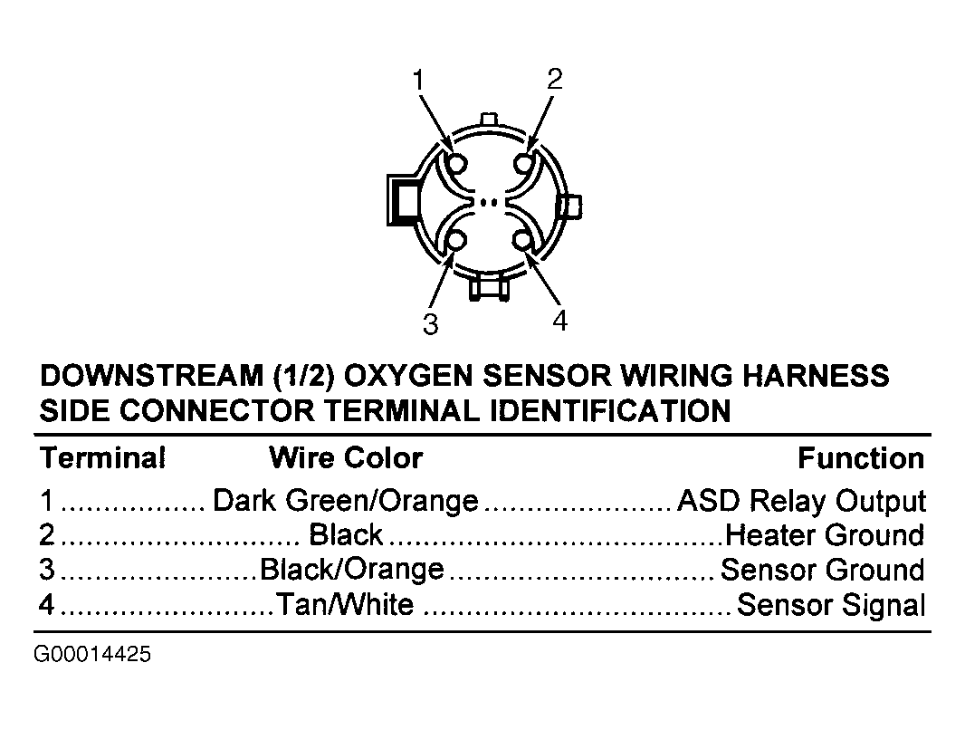 Fig 5: Identifying Downstream (1/2) Oxygen Sensor Connector Terminals