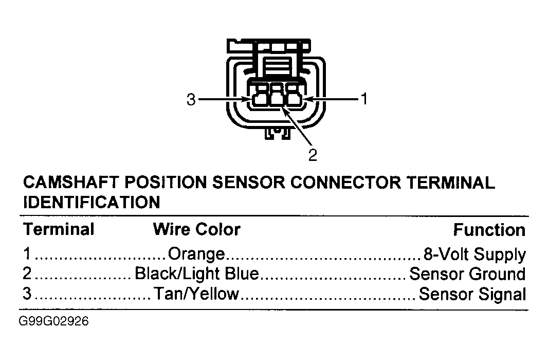 Fig 2: Identifying Camshaft Position Sensor Connector Terminals
