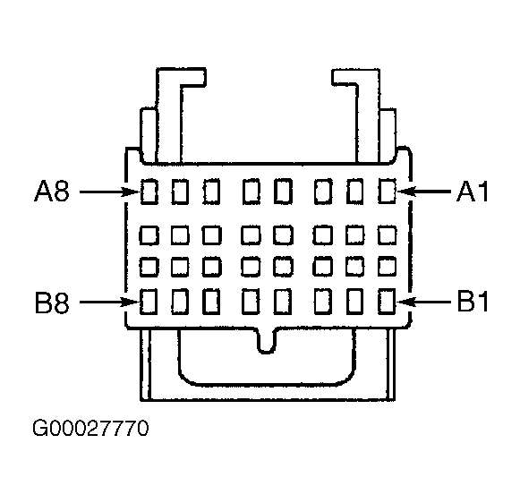 - Using test light connected to battery voltage, probe Black 16-pin TCCM connector C1 terminal A8 and Black 4-pin connector C3 terminal "A" (Black wires). See Fig 2 . If test light illuminates brightly on both circuits, go to next step. If test light illuminates dimly or does not illuminate on either circuit, repair open in appropriate Black wire between TCCM and ground. See GROUND DISTRIBUTION article in WIRING DIAGRAMS.